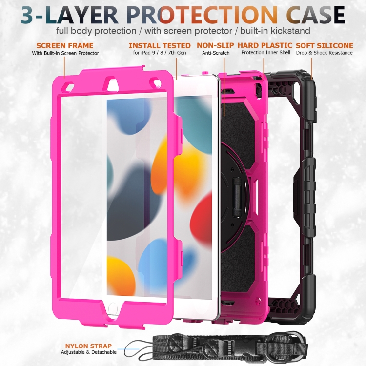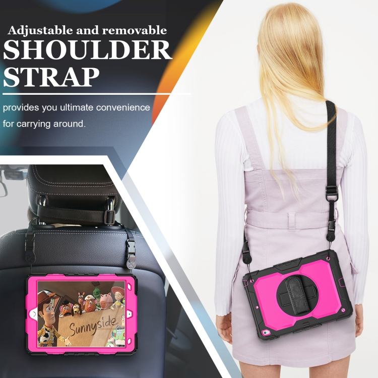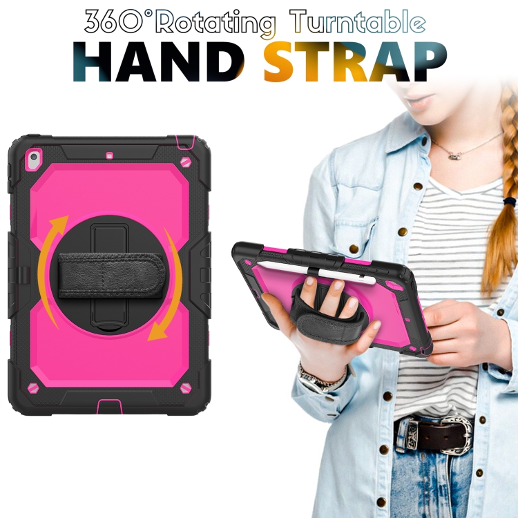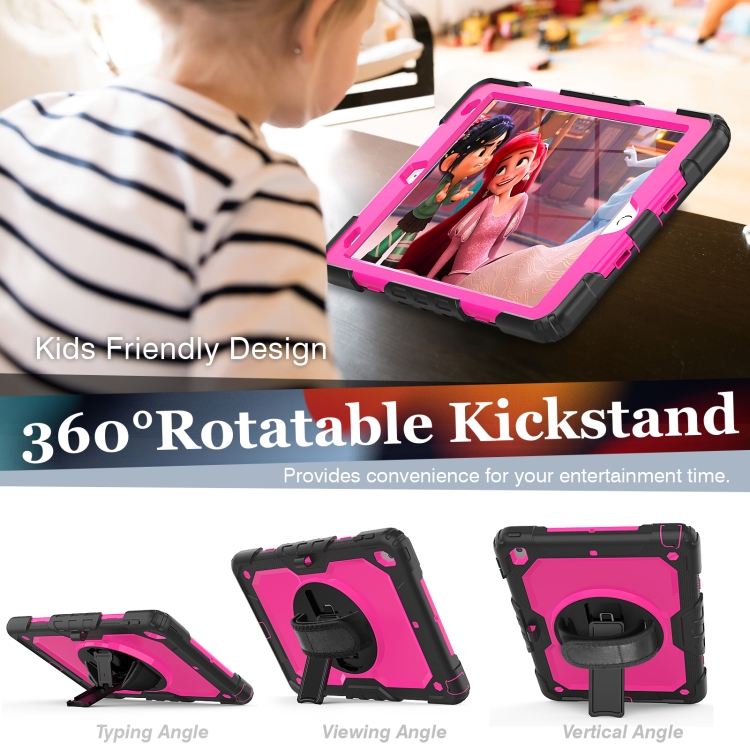 Funda Protectora para iPad 10.2 2021/2020/2019 Silicona a Prueba de Golpes + PC con Soporte Correa y Ranura para Bolígrafo (Negro + Rosa Roja)
