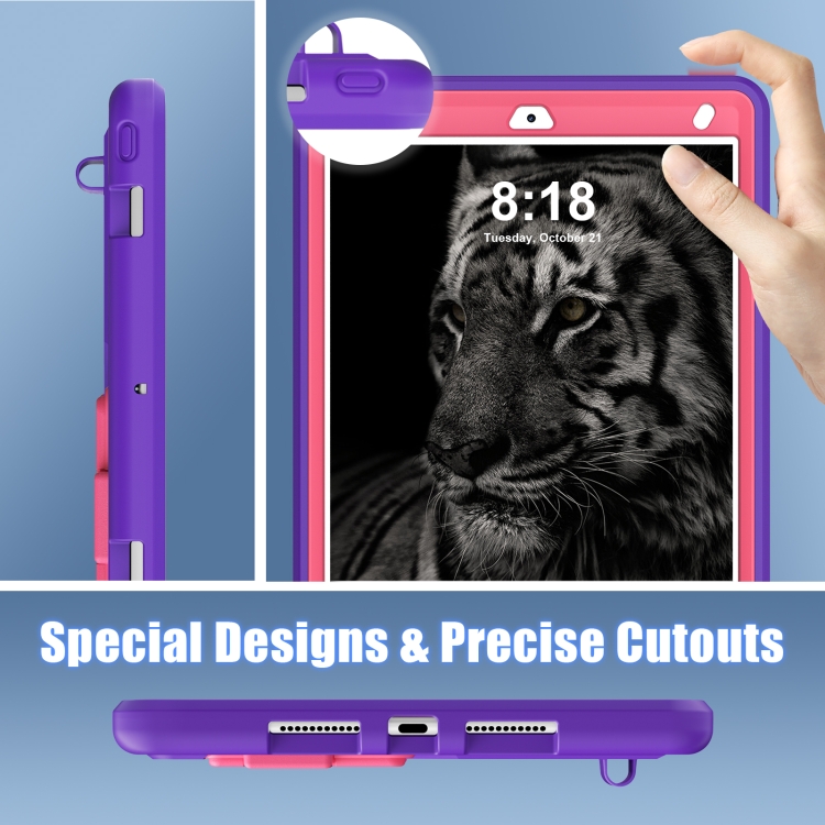 Funda Protectora para Tableta iPad 10.2 2021/2020/2019 Silicona + PC a Prueba de Golpes (Púrpura + Rosa)