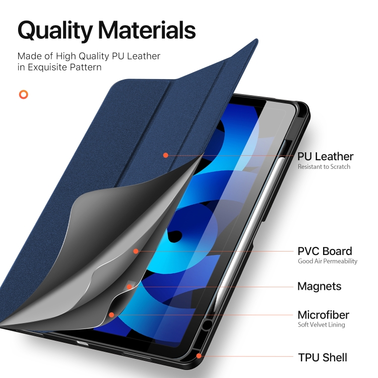 6. Material de cuero PU, cómodo y delicado, sin huellas dactilares. Carcasa trasera suave de TPU, agradable al tacto, sin huellas dactilares y sin dañar la tableta.