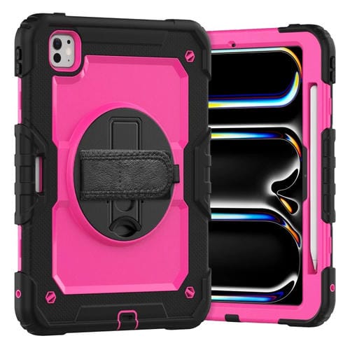Funda híbrida de silicona para iPad Pro 11 (2024) con correa para el hombro (Rosa, Rojo y Negro)