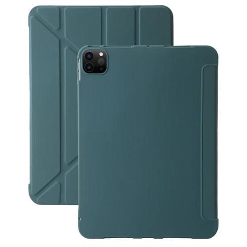 Funda para iPad Pro 11 (2024) Piel Sintética Tapa Deformable TPU Soporte (Verde Oscuro)