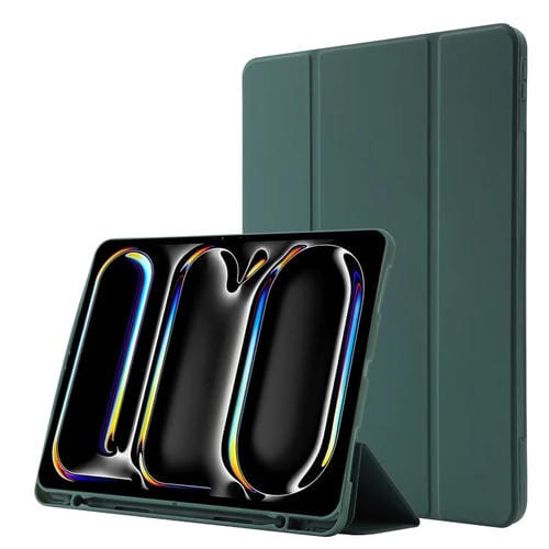 Funda para Tableta iPad Pro 13 2024 Skin Feel Cuero Triple con Ranura para Bolígrafo (Verde Oscuro)