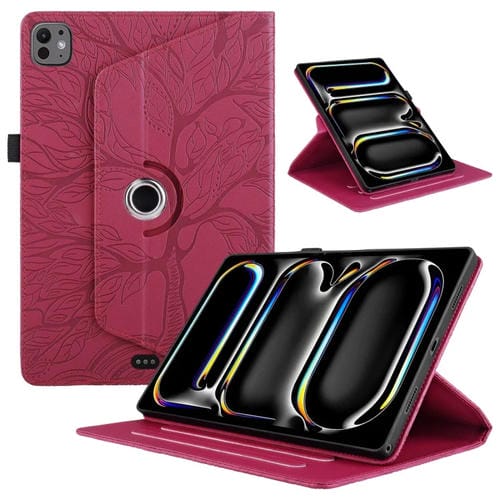 Funda para Tableta iPad Pro 13 Tree Life 2024 Cuero Rotación En Relieve (Rojo)