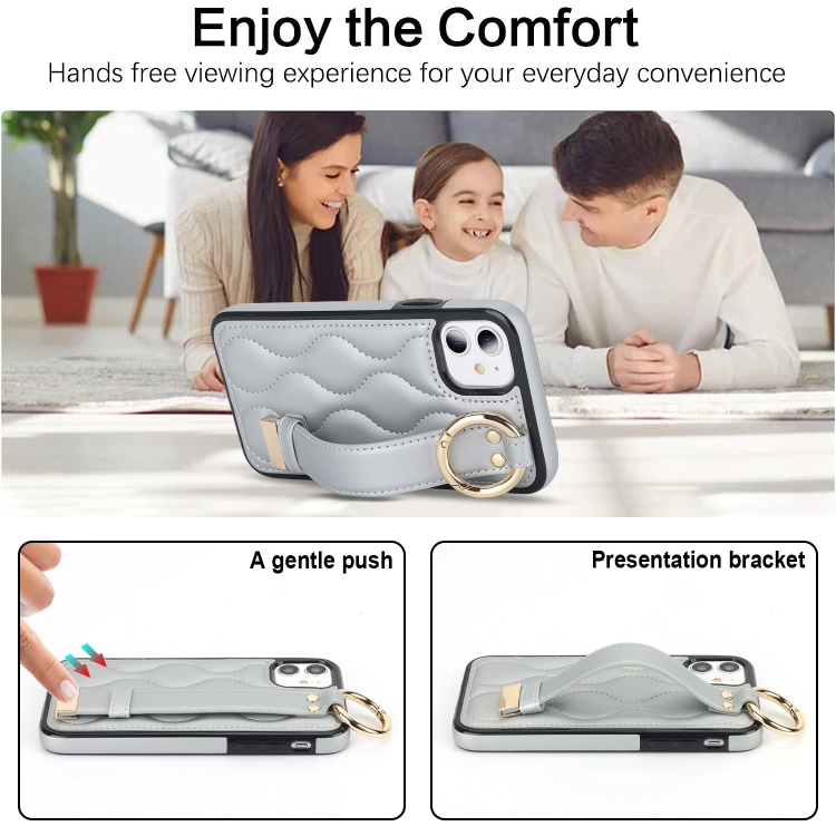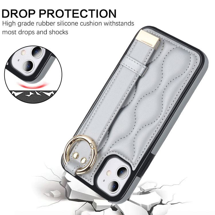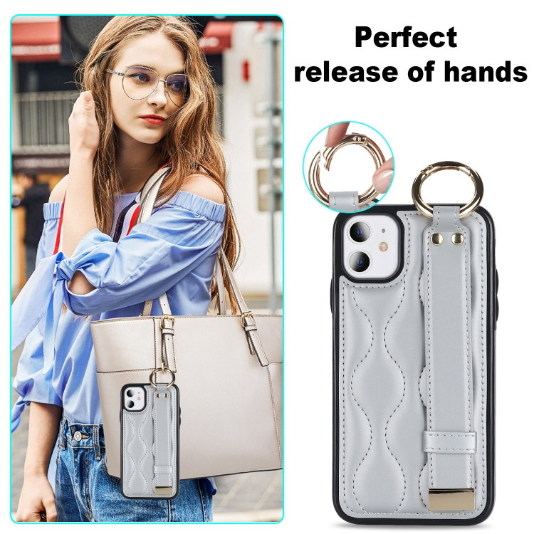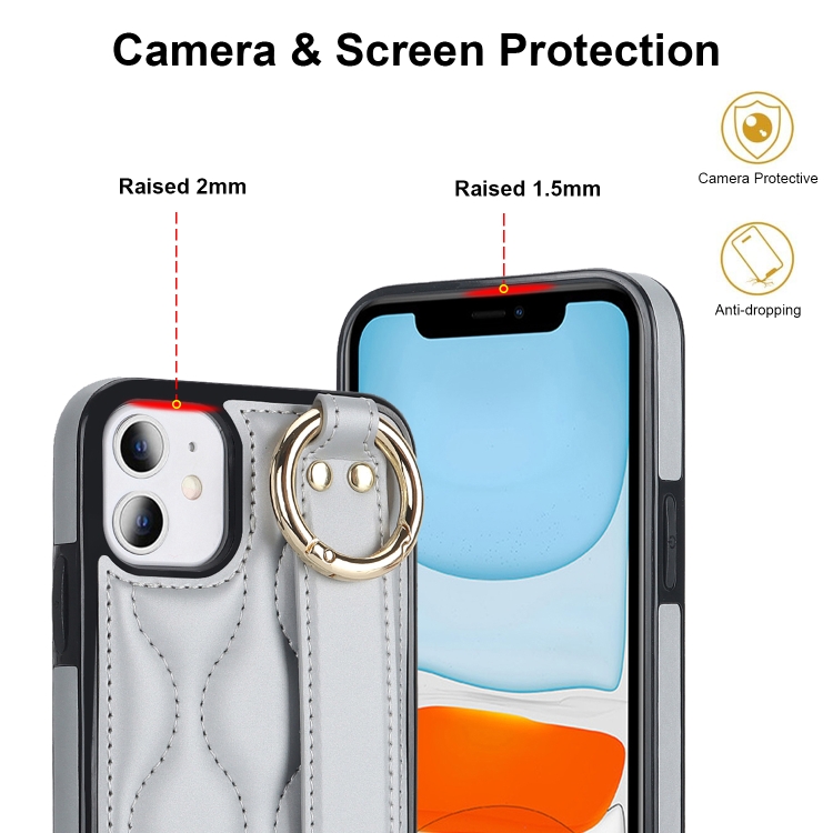 Funda para teléfono iPhone 11 Antideslizante Cobertura Completa Anillo PU con Muñequera (Plata)