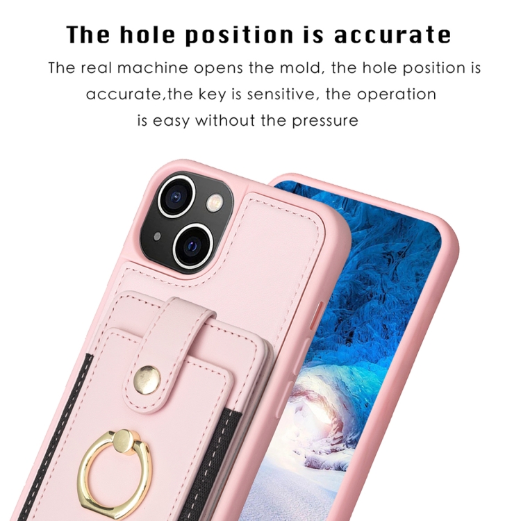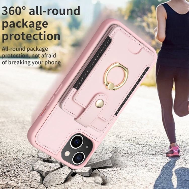 Funda para iPhone 11 Bf27 Anillo de Metal Tarjeta Bolsa Titular Caja del Teléfono (Rosa)