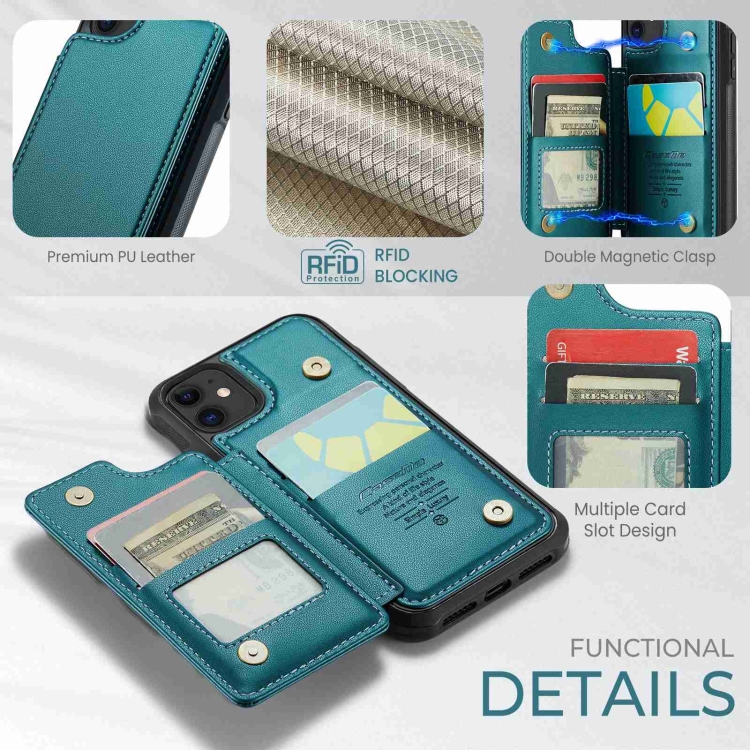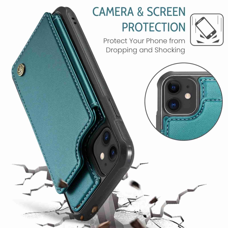 Estuche para teléfono Caseme C22 para iPhone 11 antirrobo con ranuras para tarjetas RFID (Azul Verde)