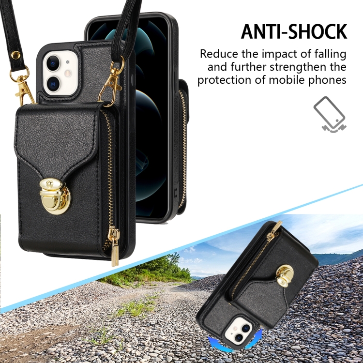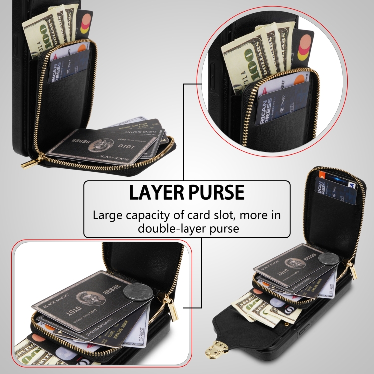 Funda para iPhone 11 con Cremallera Hardware Card Wallet Phone Case (Negro)