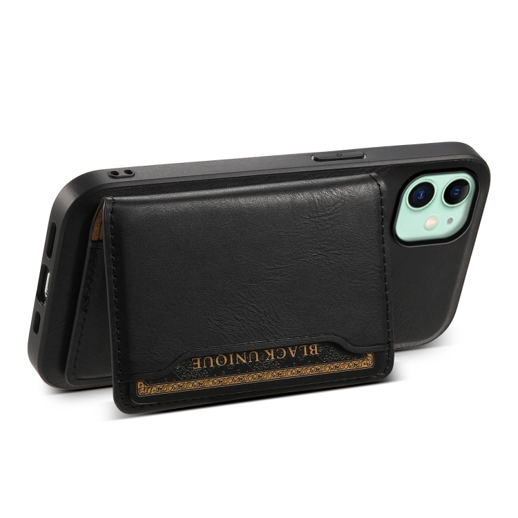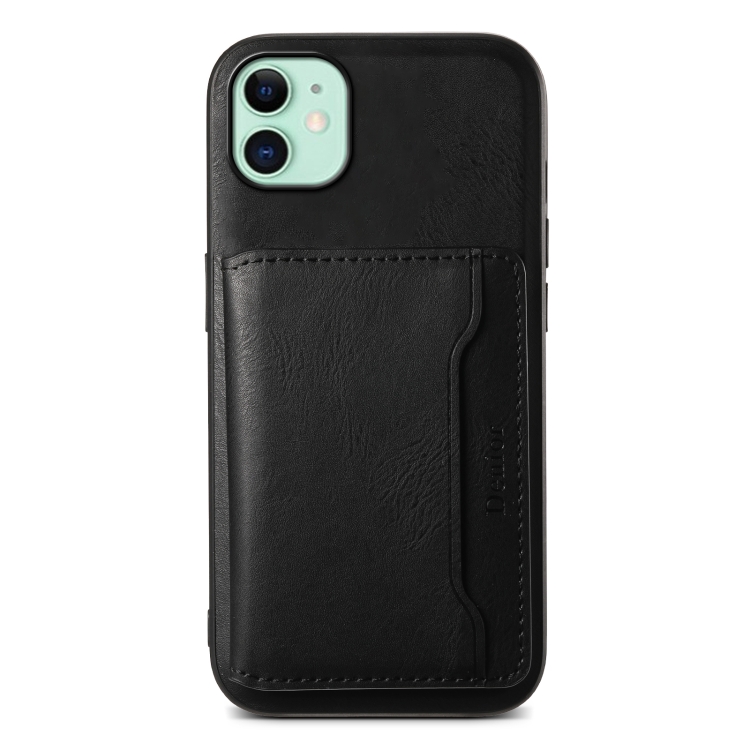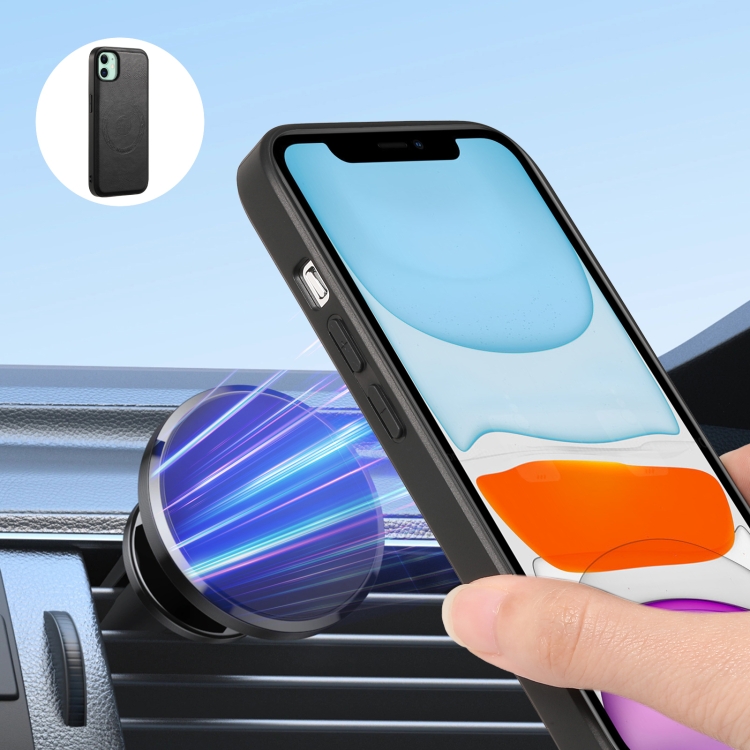 Funda para Teléfono Denior iPhone 11 con Billetera Desmontable Magsafe Cuero Textura Piel de Vaca (Negro)