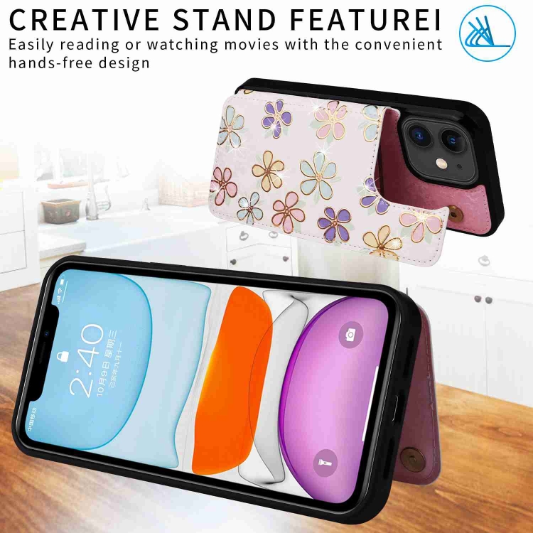 Estuche Antirrobo Rfid para iPhone 11 con Doble Hebilla Impresa (Flores Florecientes)