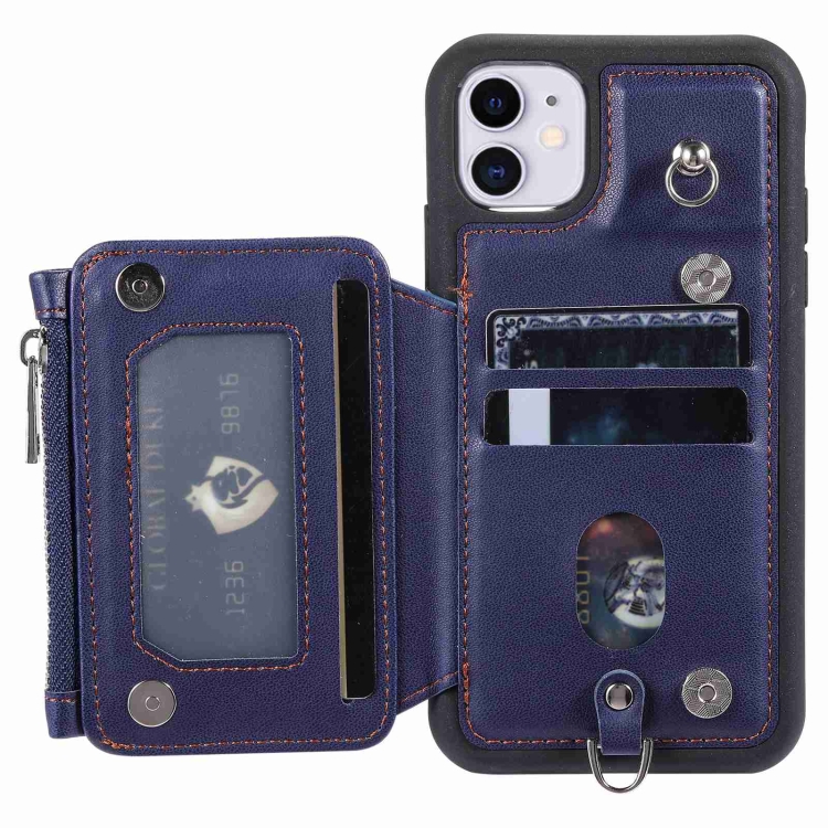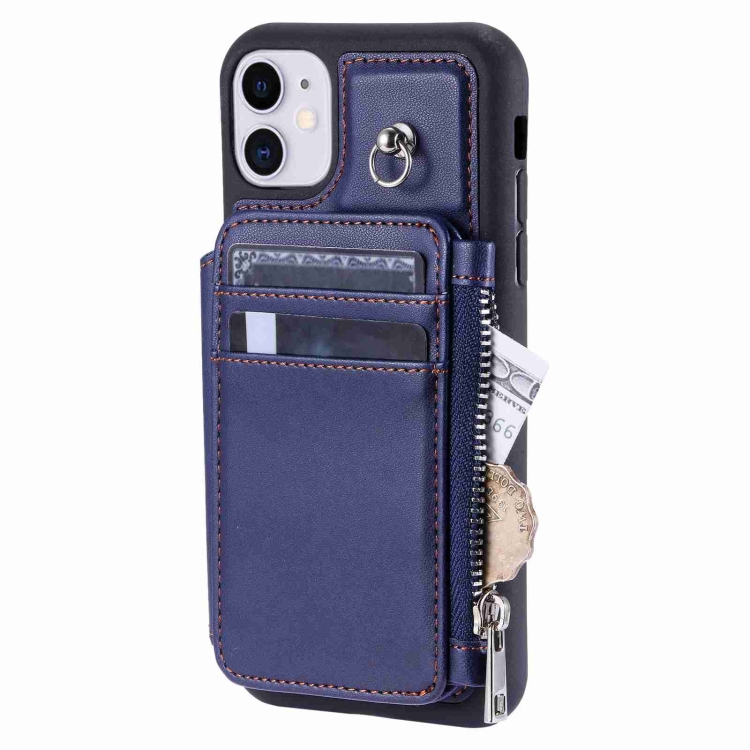 Estuche para Teléfono iPhone 11 con Rfid Ranuras para Tarjetas y Cremallera (Azul)