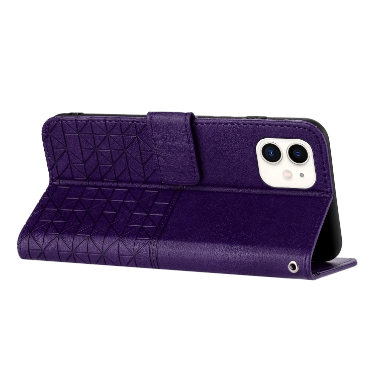 Funda para iPhone 11 Cuero Textura Rómbica con Cordón (Púrpura)