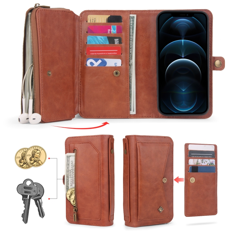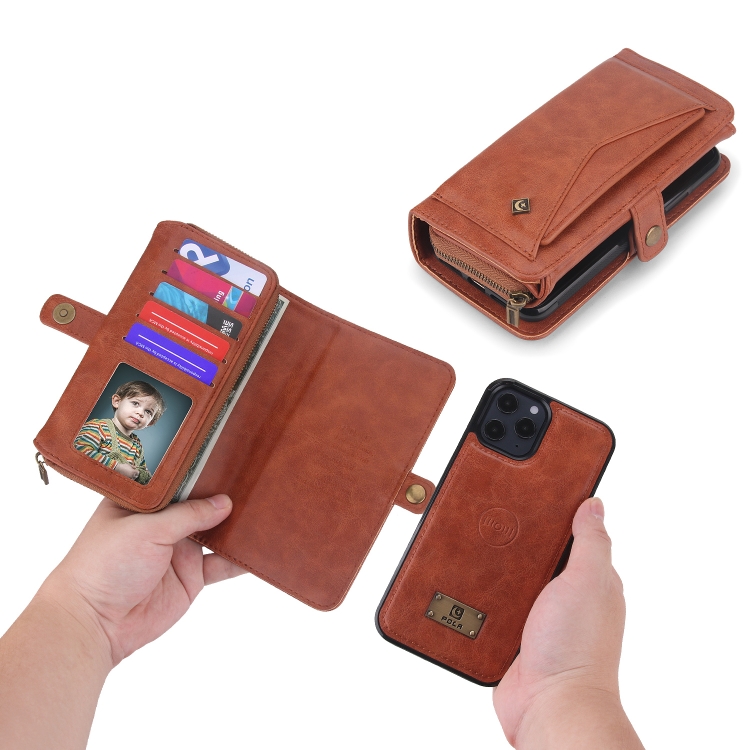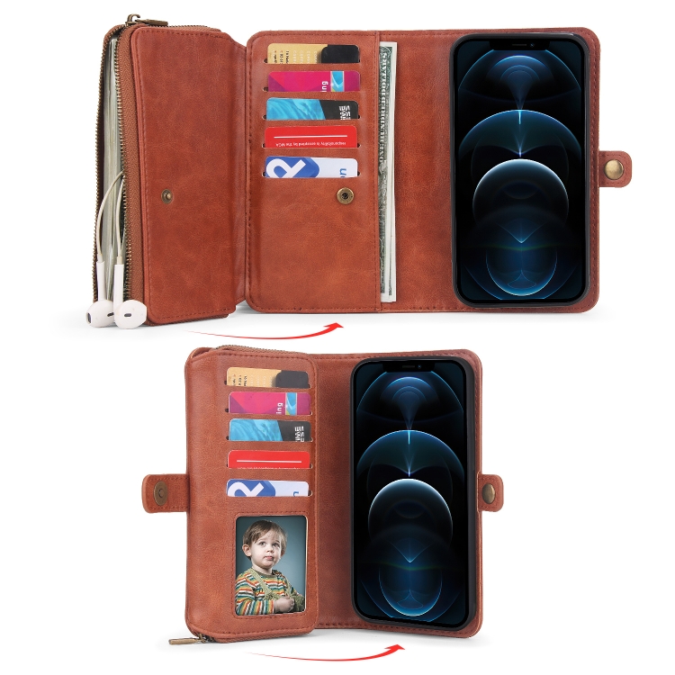 Funda de Cuero para Teléfono iPhone 11 con Billetera y Cremallera Multifuncional (Marrón)
