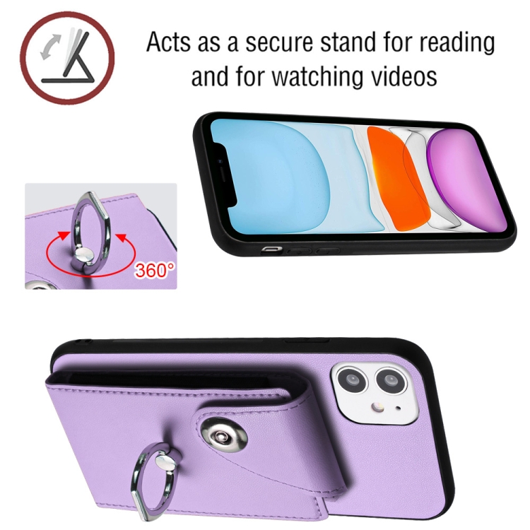 Funda para Teléfono iPhone 11 con Soporte para Anillo y Bolsa para Tarjeta con Cordón Largo (Púrpura)