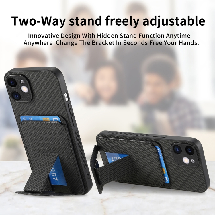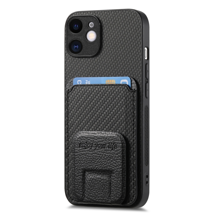 Funda para Teléfono iPhone 11 con Soporte Plegable y Bolsa para Tarjetas Fibra de Carbono (Negro)