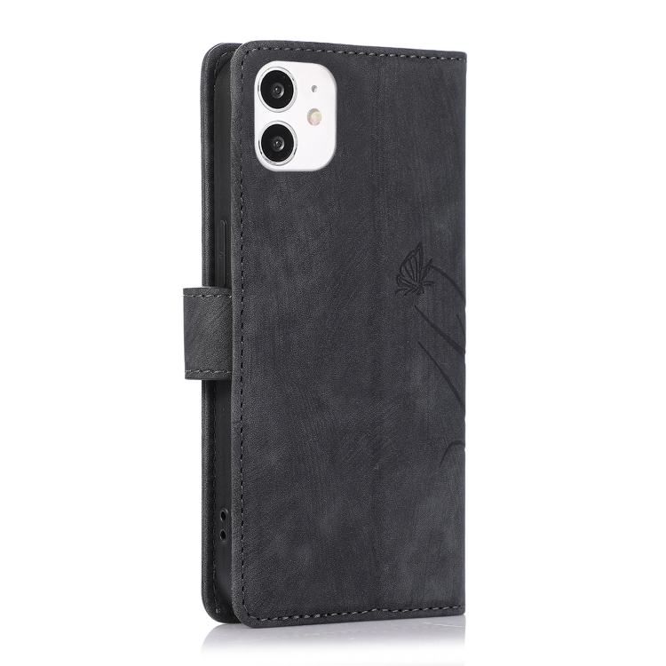 Funda para Teléfono iPhone 11 Cuero Relieve Mariposa Orquídea (Negro)