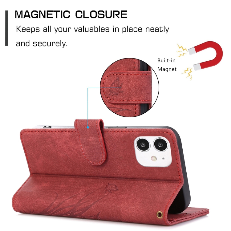 Funda para Teléfono iPhone 11 Cuero con Relieve Mariposa Orquídea (Rojo)