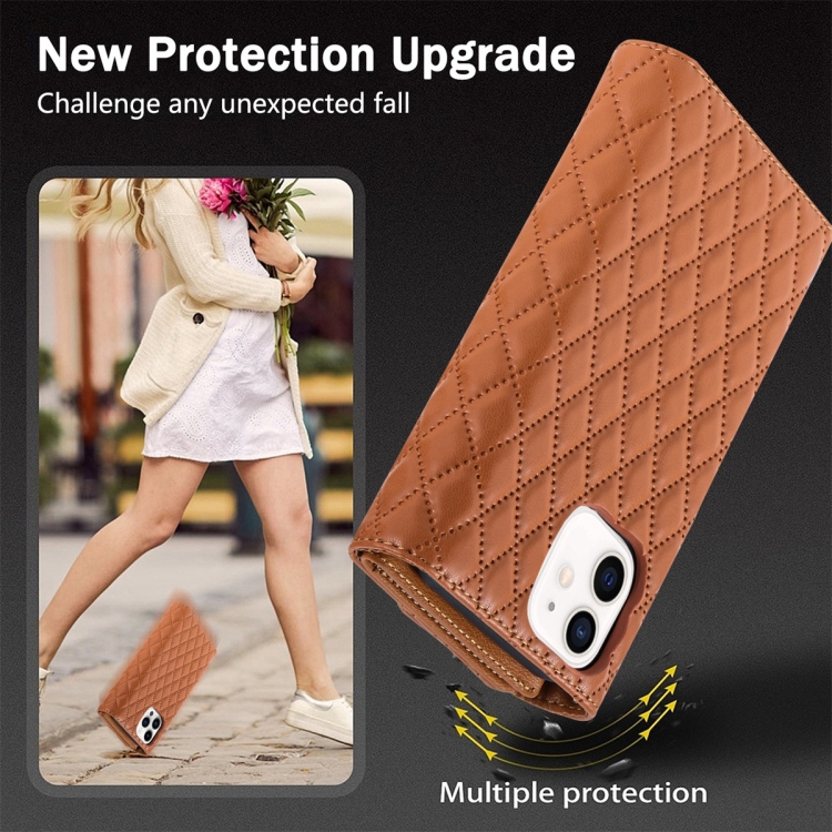 Funda para Teléfono iPhone 11 Cuero Rómbico Billetera MultiTarjeta con Cremallera (Marrón)
