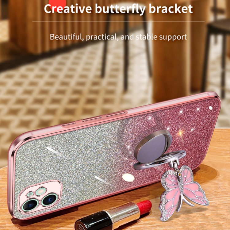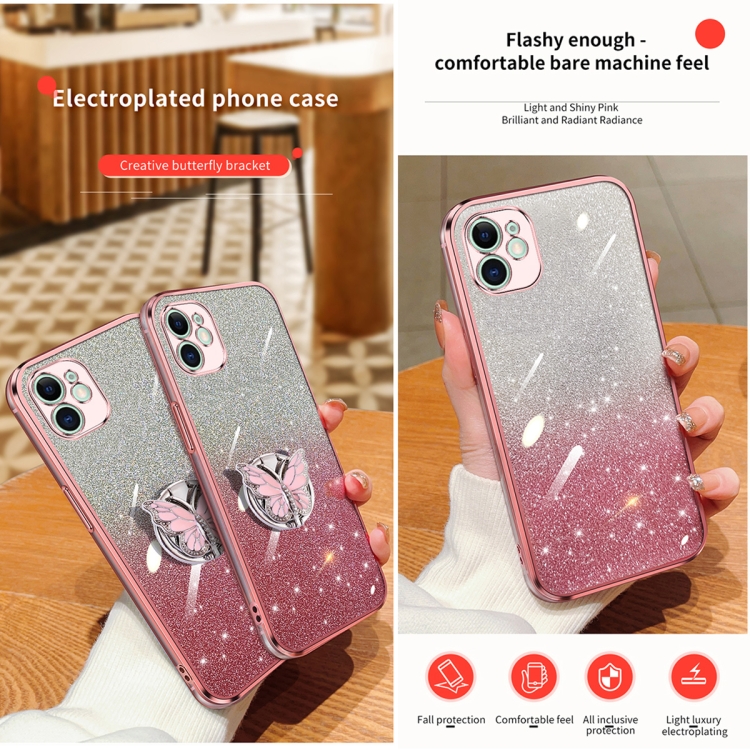 Funda para Teléfono TPU iPhone 11 Soporte Mariposa Brillo Degradado (Azul Sierra)