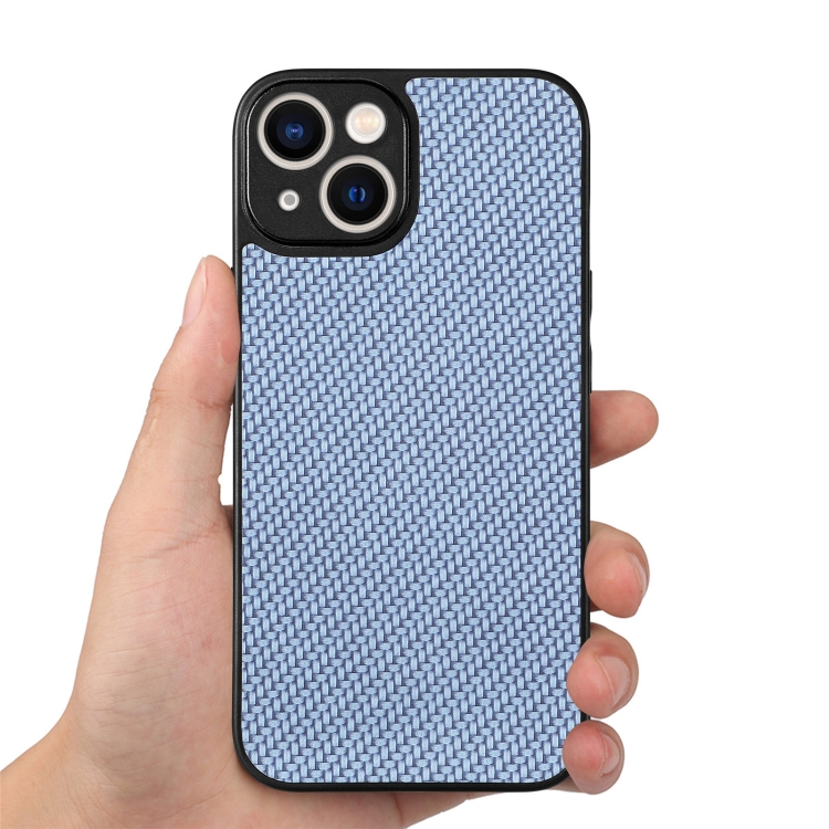 Funda Trasera iPhone 11 Cuero Textura Fibra de Carbono (Azul)