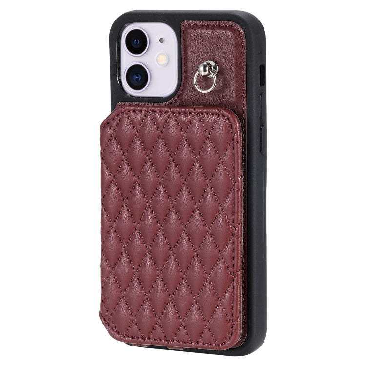 Funda para Teléfono iPhone 11 Grid Texture Card Bag con Cordón (Rojo)