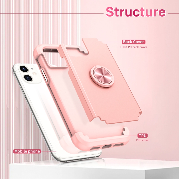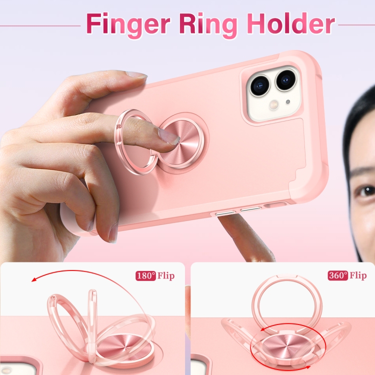 Funda para Teléfono iPhone 11 L2 Magnética con Soporte de Anillo Giratorio (Oro Rosa)