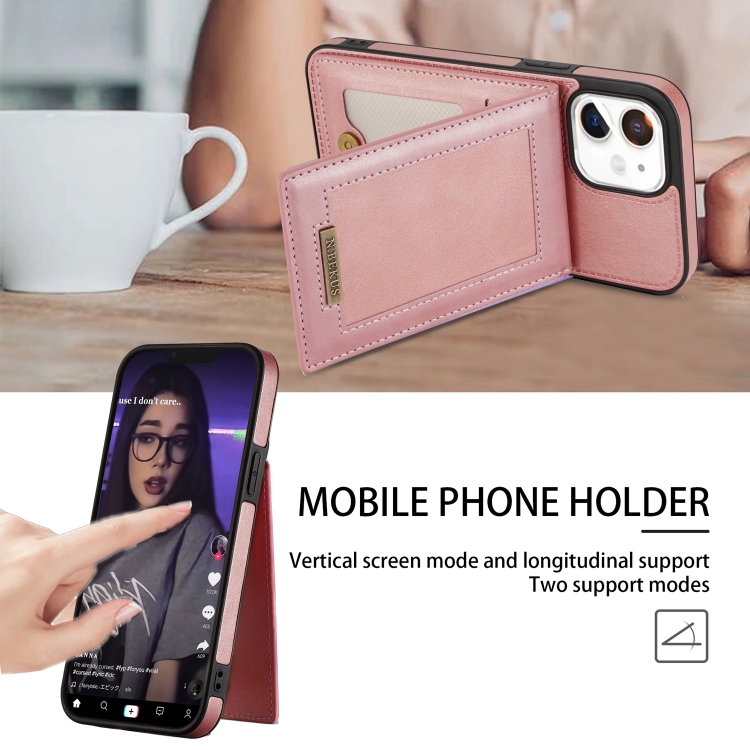 Funda para iPhone 11 N.Bekus Vertical Flip Card Slot Rfid Phone Case (Rose Gold)