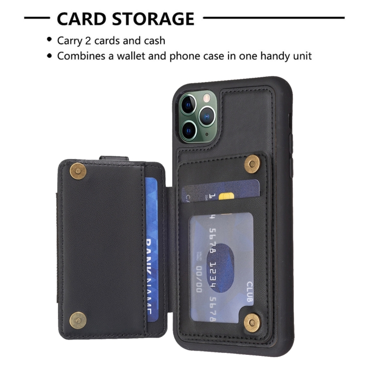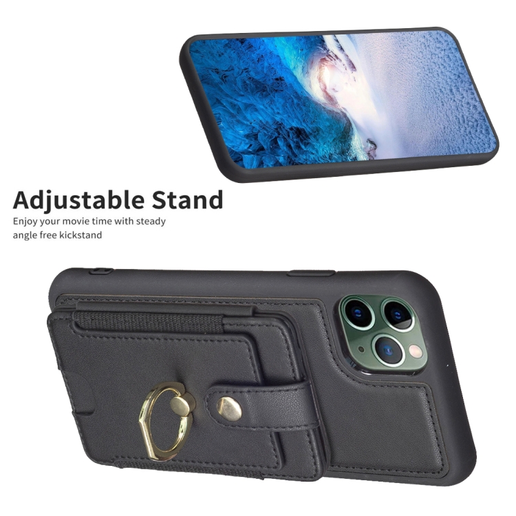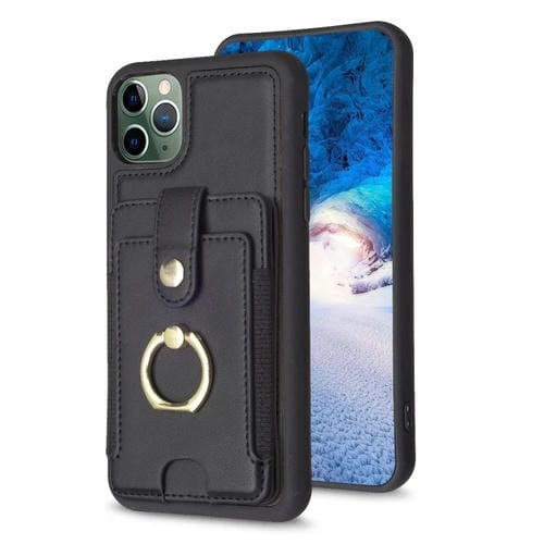 Funda para iPhone 11 Pro Bf27 Anillo de Metal Tarjeta Bolsa Titular Caja del Teléfono (Negro)
