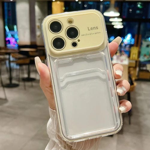 Funda híbrida para iPhone 11 Pro TPU para PC con ventana grande y ranura para tarjeta (Amarillo)