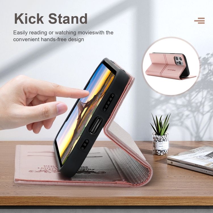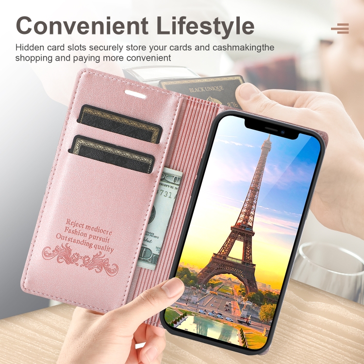 Funda para iPhone 11 Pro Dream Succión Magnética Business de Cuero de PU con Tapa Horizontal, Soporte, Ranura para Tarjeta y Billetera (Oro Rosa)