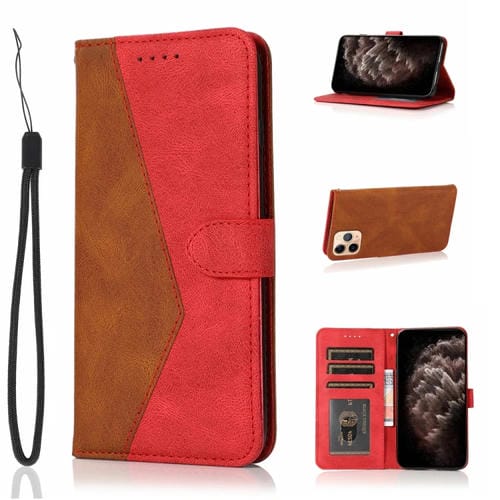 Estuche para Teléfono iPhone 11 Pro Cuero Costuras Dos Colores (Marrón Rojo)