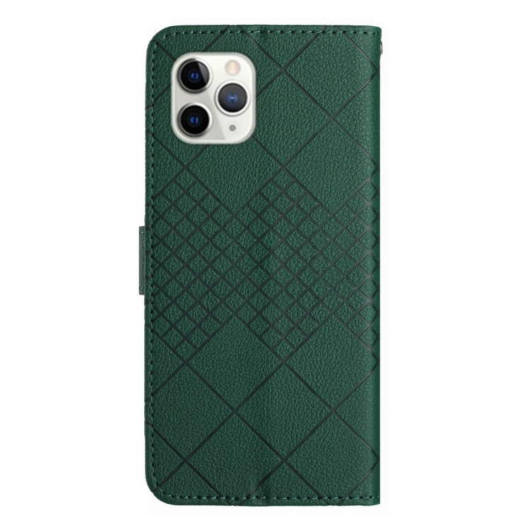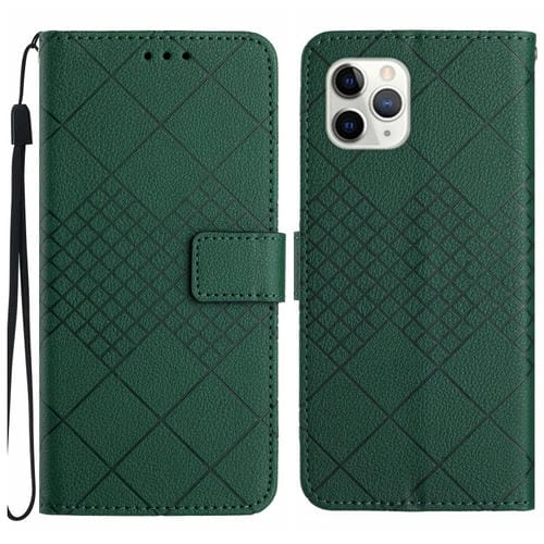 Estuche para Teléfono iPhone 11 Pro Cuero con Textura de Rejilla Rómbica (Verde)