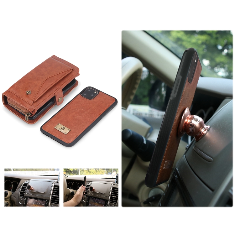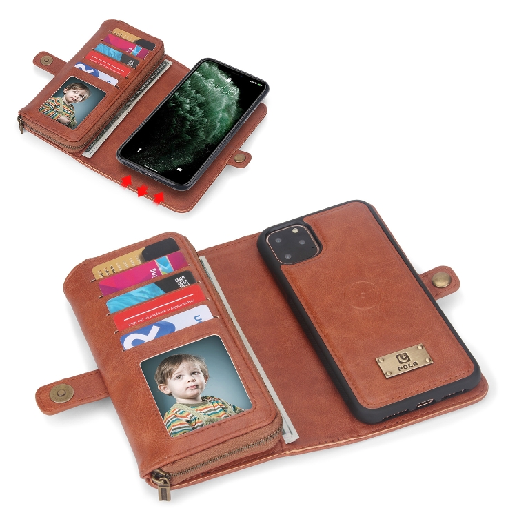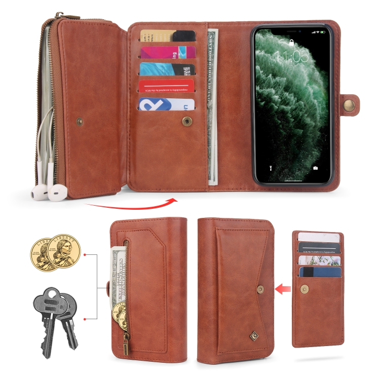 Funda para Teléfono iPhone 11 Pro Cuero con Billetera y Cremallera Multifuncional (Marrón)