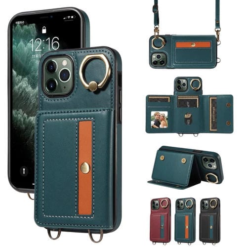 Funda para Teléfono iPhone 11 Pro Cuero Soporte Anillo Bolso Cruzado Tarjeta (Verde)