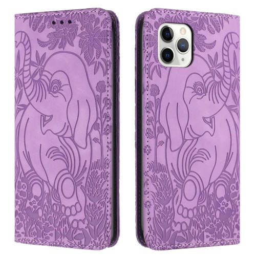 Funda de Teléfono para iPhone 11 Pro Cuero con Relieve de Elefante Retro (Púrpura)