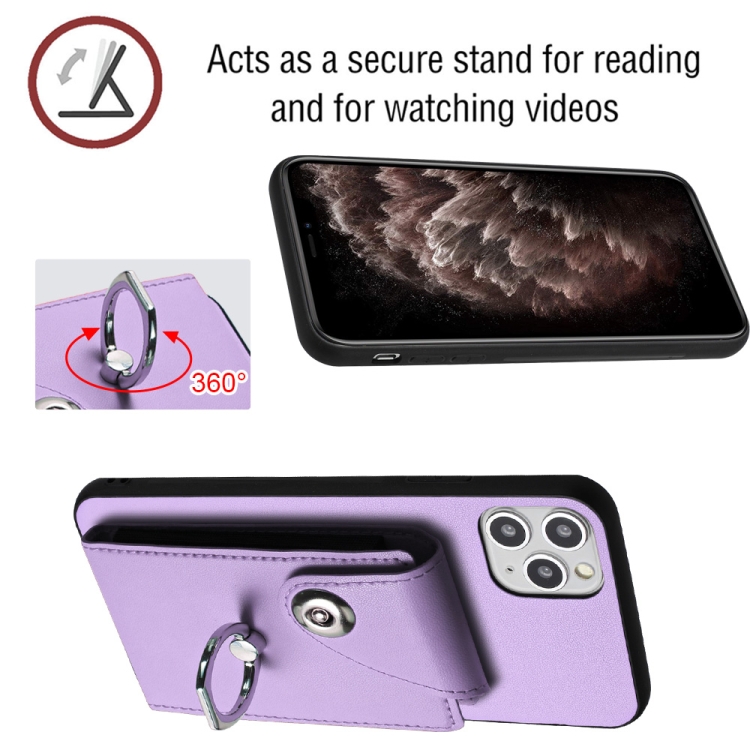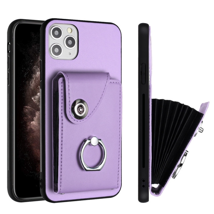 Funda para Teléfono iPhone 11 Pro con Soporte para Anillo y Bolsa para Tarjeta (Púrpura)