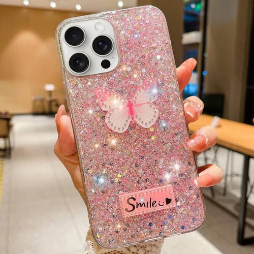Funda para Teléfono TPU iPhone 11 Pro con Epoxi Mariposa y Diamantes de Imitación (Rosa)