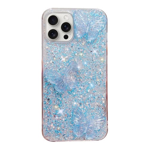 Funda para Teléfono iPhone 11 Pro TPU Epoxi Mariposas Cristal Lentejuelas Estrelladas (Azul)