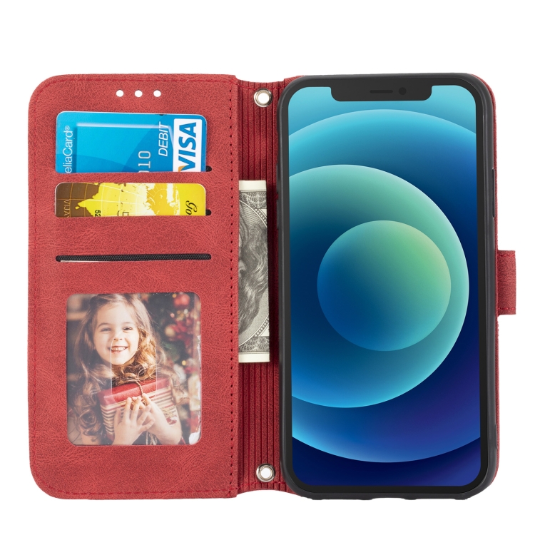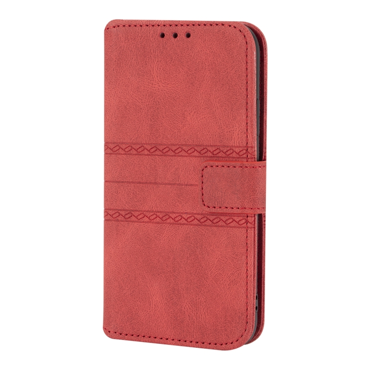 Funda para iPhone 11 Pro PU + TPU Hebilla Magnética a Rayas Estuche Cuero Tapa Horizontal Soporte Ranura Tarjeta Billetera Marco Fotos Eslinga (Rojo)