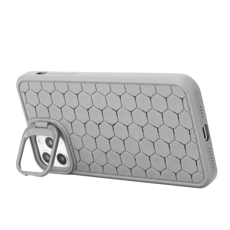 Funda para teléfono iPhone 11 Pro Honeycomb Radiating Holder TPU con cordón (Gris)
