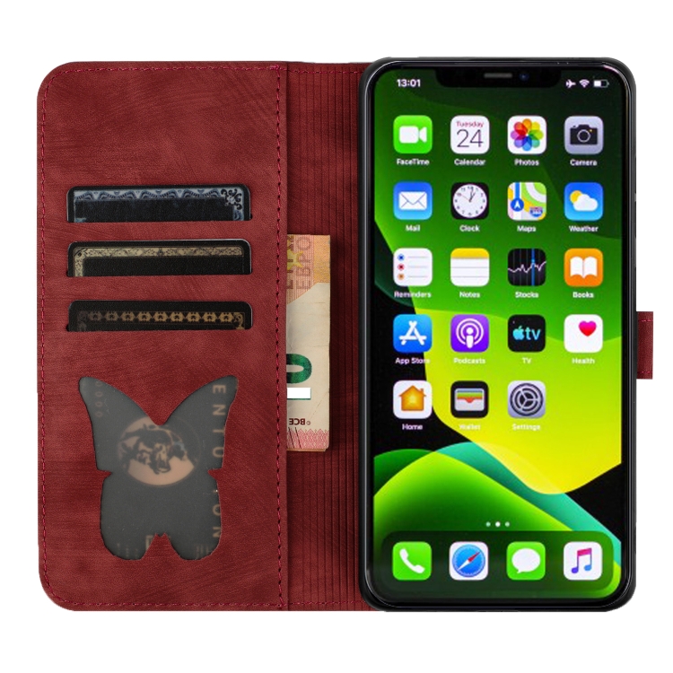 Funda de Cuero para iPhone 11 Pro Max Butterfly Cat con Tapa en Relieve (Rojo)