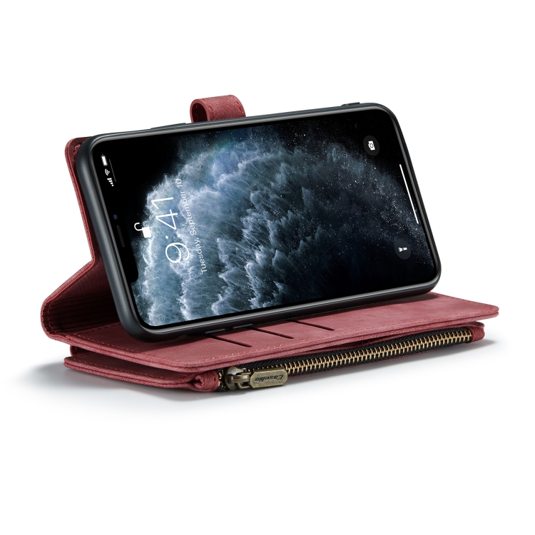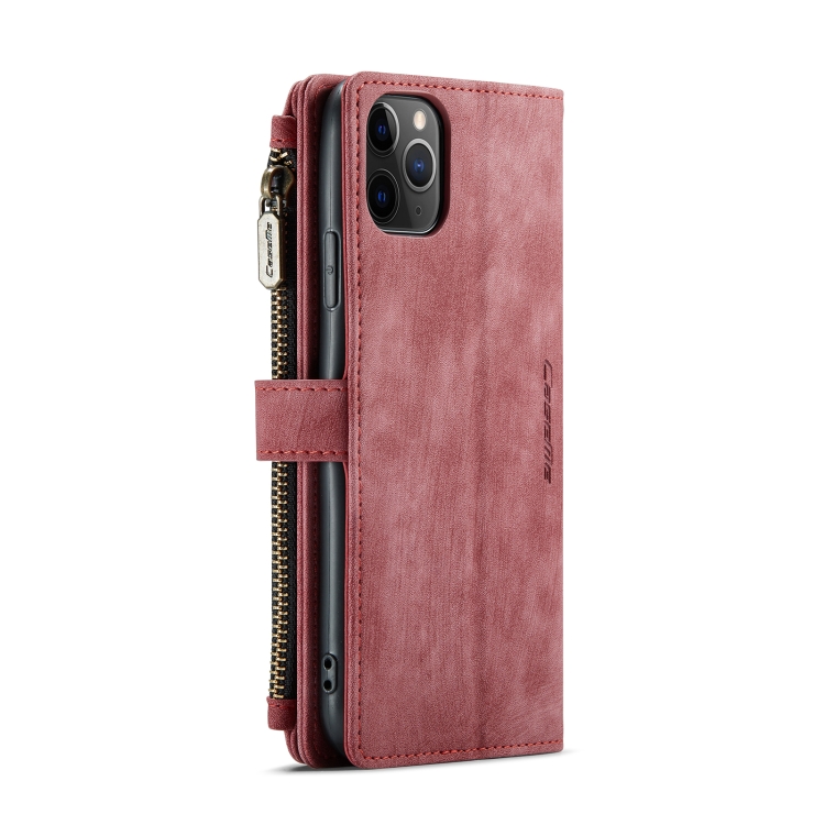 Funda para iPhone 11 Pro Max Caseme-C30 PU + TPU Cuero con Tapa Horizontal Multifuncional Soporte Ranura Tarjeta Billetera Bolsillo Cremallera (Rojo)