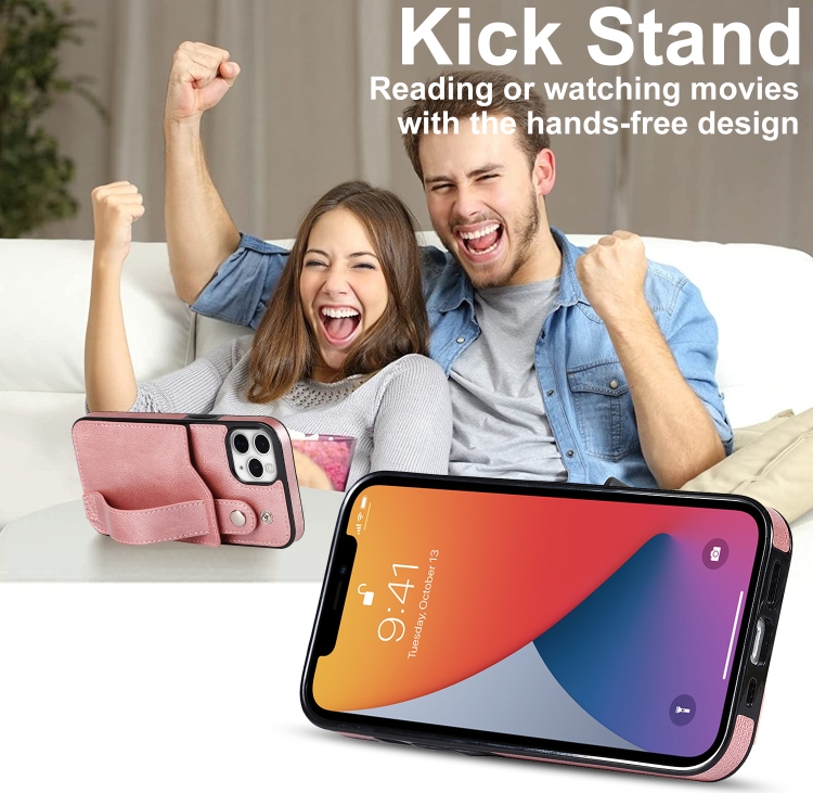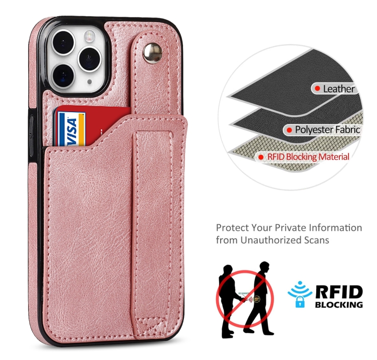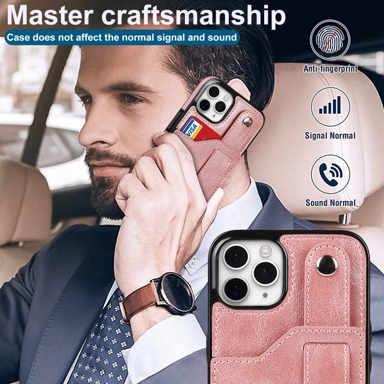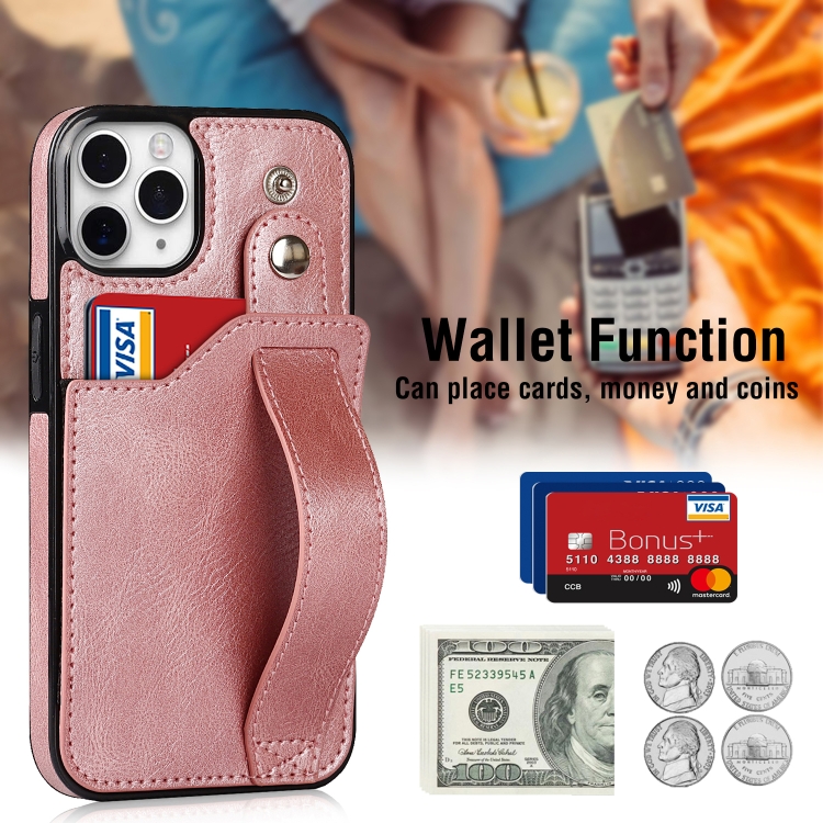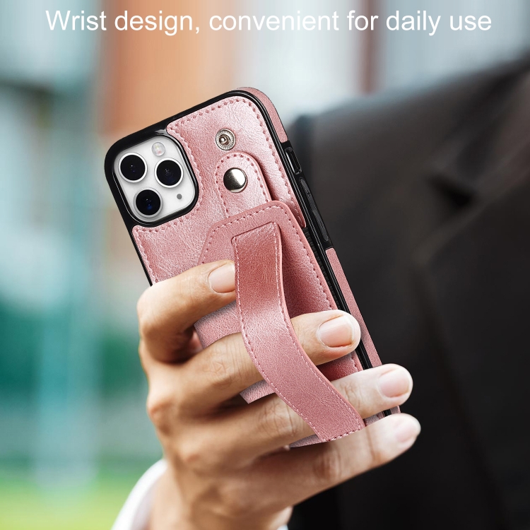 Funda para iPhone 11 Pro Max Crazy Horse Texture Cuero TPU + PU a Prueba de Golpes con Ranura para Tarjeta y Correa para la Muñeca (Oro Rosa)