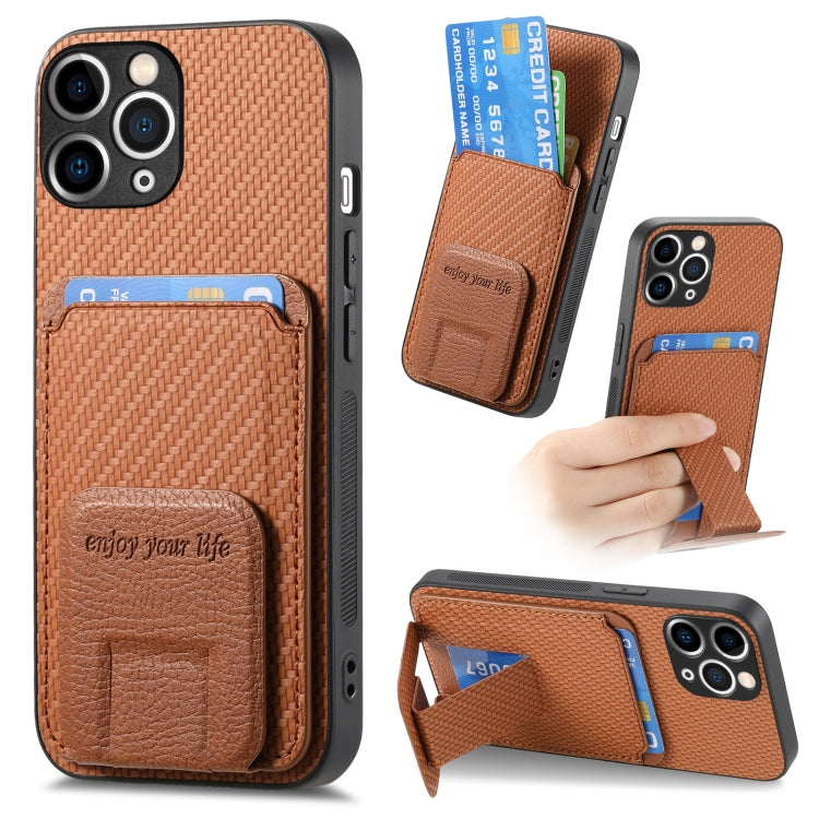 Funda para Teléfono iPhone 11 Pro Max con Soporte Plegable y Bolsa para Tarjetas Fibra de Carbono (Marrón)