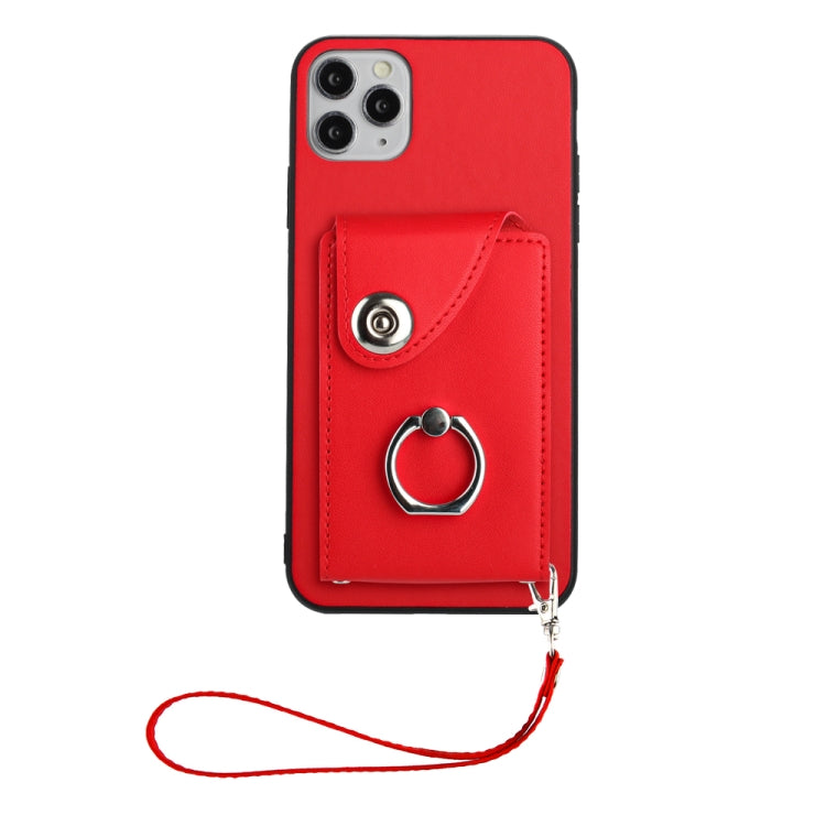 Funda para Teléfono iPhone 11 Pro Max de PU con Soporte para Anillo y Bolsa para Tarjeta con Cordón (Rojo)