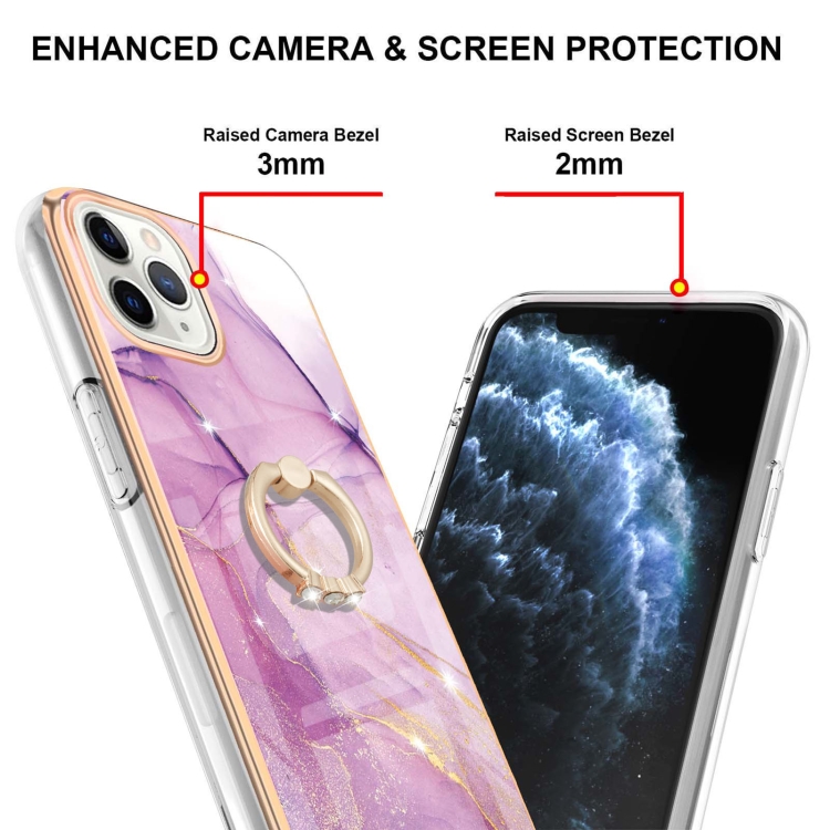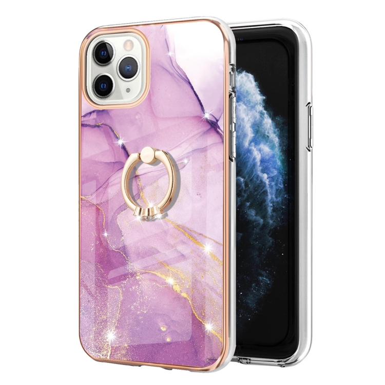 Estuche TPU iPhone 11 Pro Max Galvanoplastia Patrón Mármol Soporte Anillo (Púrpura)