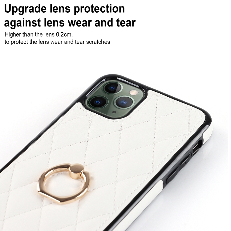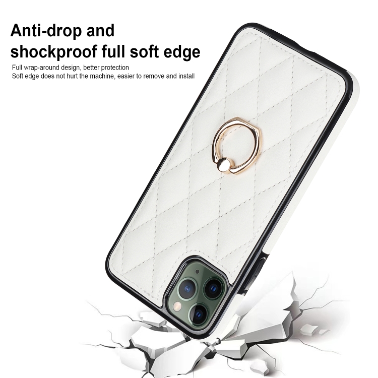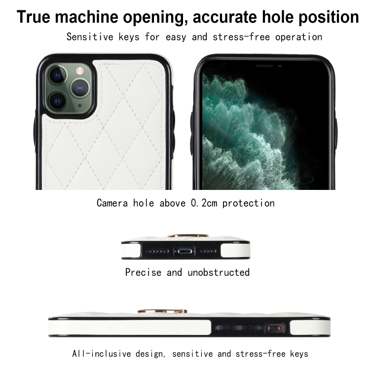 Funda para iPhone 11 Pro Rhombic PU Cuero con Soporte para Anillo (Blanco)