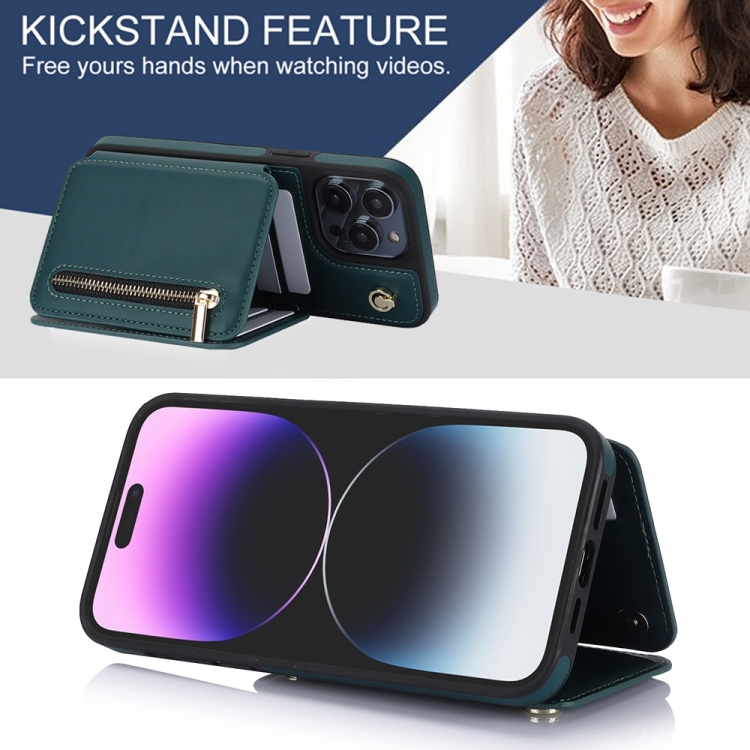 Estuche para Teléfono iPhone 11 Ym006 con Bolsa para Tarjetas y Cremallera con Cordón Doble (Verde)