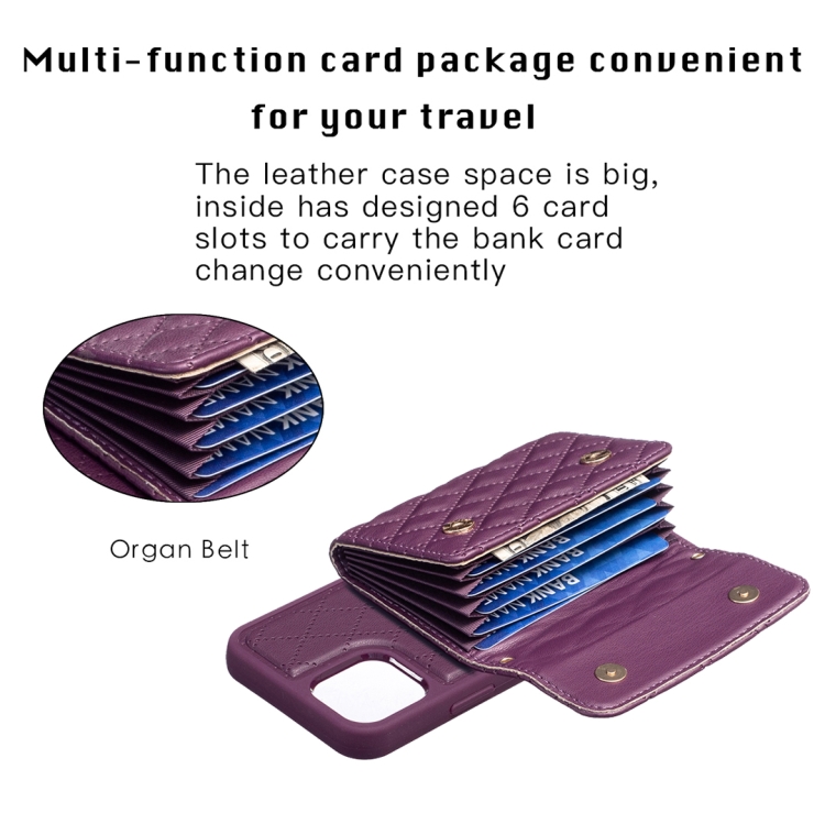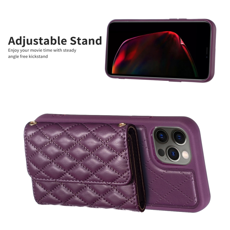 Estuche de Teléfono iPhone 12 / 12 Pro Cuero Rómbico con Billetera Horizontal (Púrpura Oscuro)