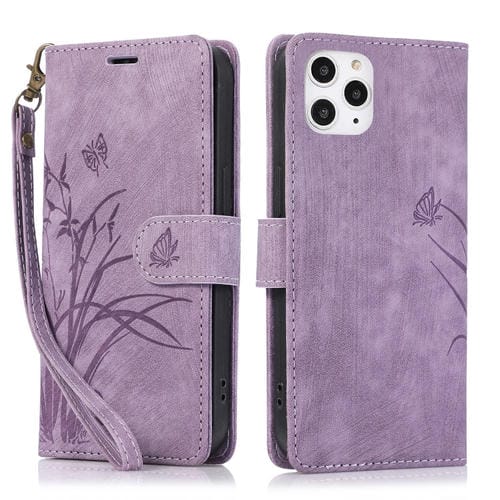 Funda para Teléfono iPhone 12/12 Pro Cuero con Relieve Mariposa Orquídea (Púrpura)