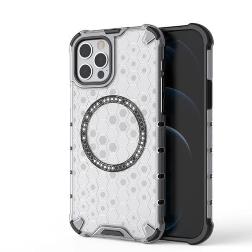 Funda para teléfono iPhone 12/12 Pro Honeycomb Magnetic Ring a prueba de golpes (Blanco)